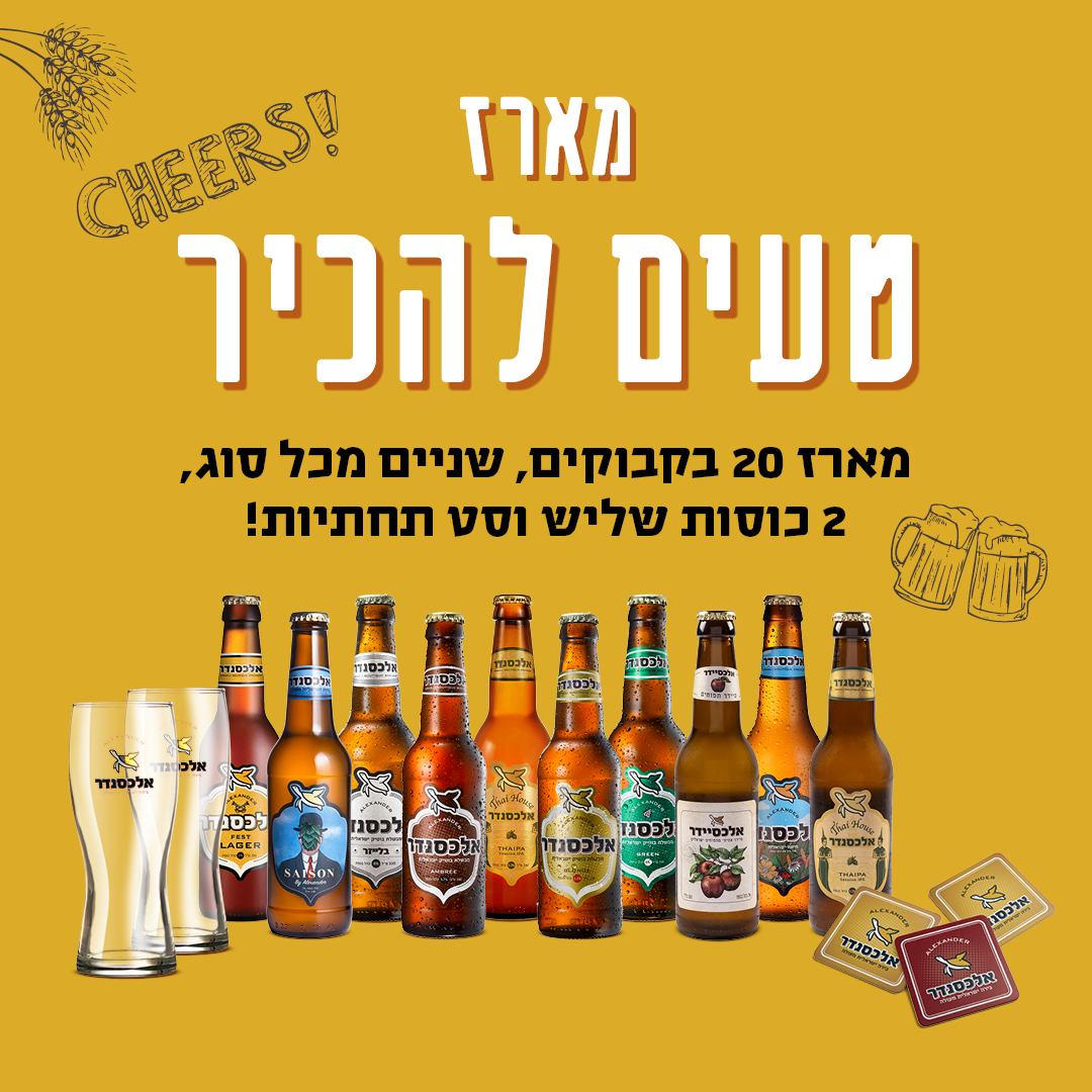 - 2 בלייזר (8%) – בירה חזקה וזהובה, חלקה וקרמית עם סיומת מרירה מושלמת.